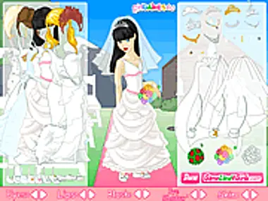 Choose the best bride dress, veil, flowers and shoes. Then make click on the inferior menu to makeup the girlfriend.
