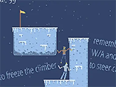 A mountain climbing game where you use the frozen bodies of your previously perished climbers to reach the peak.