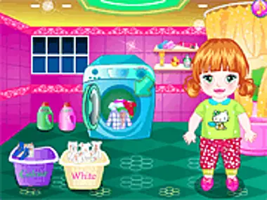 Baby is home alone. Help her clean her room, do her laundry and tend the garden! Teach her how to do it all by herself.