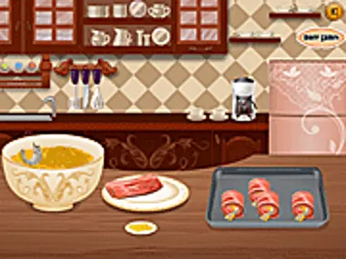 หากคุณกำลังมองหาอาหารเรียกน้ำย่อยรสชาติเยี่ยม คุณมาถูกที่แล้ว ในเกมนี้ เป้าหมายของคุณคือการทำเบคอนพันกุ้งคานาเป้ที่น่ารับประทานจนน้ำลายสอ ที่คุณจะต้องติดใจจนอยากกินอีก เพียงแค่คลิกและลากอุปกรณ์และส่วนผสมที่จำเป็น และทำตามขั้นตอนทีละขั้น