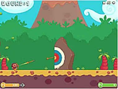 Take on the rival cavemen in this two player arrow firing competition!