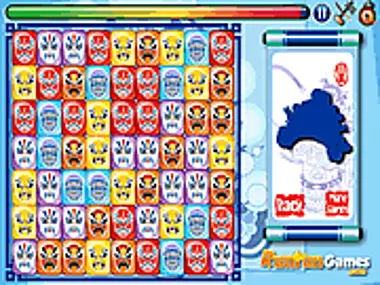 งิ้วปักกิ่งคือแก่นแท้ของวัฒนธรรมจีน เป็นที่นิยมอย่างมากในจีนเนื่องจากการแสดงเสียงร้องอันเป็นเอกลักษณ์และการแต่งกายที่งดงาม มาเล่นเกมสนุกๆ นี้และลองเชื่อมหน้ากากงิ้วปักกิ่งสามชิ้นขึ้นไปที่อยู่ติดกันเพื่อเรียกนักแสดงออกมา เมื่อนักแสดงปรากฏตัว คุณก็จะได้เพลิดเพลินกับการแสดงงิ้วปักกิ่งที่ยอดเยี่ยม