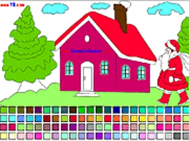 Christmas Coloring. Pick colors from the palette and color Santa and Christmas tree, house and get ready to celebrate the Christmas. Merry Christmas.