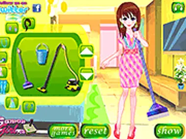 This beautiful lady is busy cleaning her house. Can you help her get ready for the busy day?