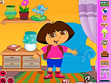 Can you help design a new look for the dora's room? Decorate the room with several different styles of furniture and accessories. Make dora happy.