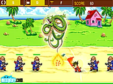 Your mission is protect the dragonball at the center screen.Enemies will come from both left and right side.