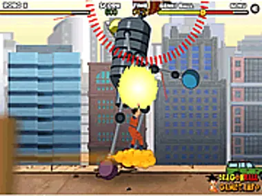 เมืองกำลังถูกหุ่นยนต์เอเลี่ยนโจมตี โกคูต้องมาทำลายหุ่นยนต์และช่วยเมืองให้พ้นจากภัยพิบัติ โดยการใช้ลูกบอลไฟยิงไปที่จุดอ่อนของหุ่นยนต์