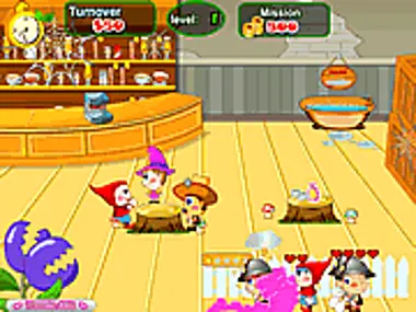 It's a hot day, and the dwarfs are thirsty. Oops... the whole horde of them is coming to Tiko's new tearoom! Will he manage to serve all of them the things they want, so that they will be satisfied and come back a next time? Help him to handle this dwarf rush. In the first level you can only serve two tables and two kind of drinks. If you go to the next levels you will have more tables and different drinks for you customers. You even can buy new decorations to make this tearoom beautiful. Tiko wants to earn five stars for his tearoom. You can help him reach this goal!