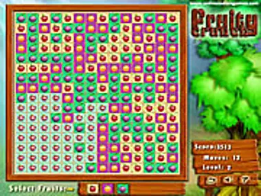Fruity Crunch เป็นเกมพัซเซิลแบบแฟลชอีกเกม เป้าหมายของเกมคือการทำให้ตารางทั้งหมดเป็นผลไม้ชนิดเดียวกัน คุณทำได้โดยคลิกที่ผลไม้ด้านล่างเพื่อขยายห่วงโซ่ไปยังผลไม้นั้น คุณเริ่มจากมุมล่างซ้าย