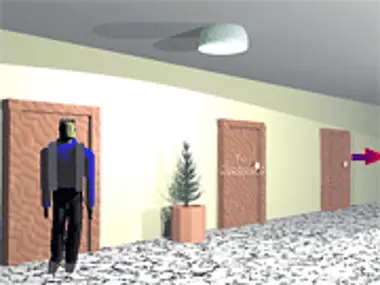 Explore the 3D rendered world as you chat with others around the base. Careful what doors you open.
