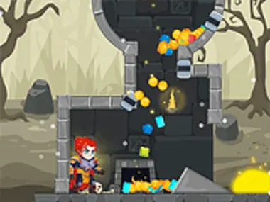 ช่วยอัศวินผู้กล้าหาญให้ไปถึงสมบัติและในภายหลังไปหาเจ้าหญิงของเขา ดึงสลักทีละอัน ป้องกันลาวาไม่ให้ทำร้ายเขา กักขังอันตราย และทำให้หินมีค่าทั้งหมดตกลงมาใกล้เขา ในด่านต่อๆ ไป คุณต้องหยุดกอบลินไม่ให้ทำร้ายเขา ขอให้โชคดี!