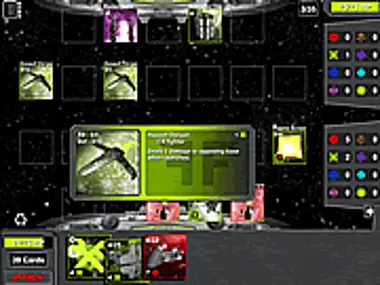 Select which cards to play against the space attacks. Conserve energy to use better cards.