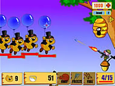 Play as a hired gunman and defend the honey from incoming bears! Upgrade you abilities and shoot enemies in 25 levels. Use mouse to aim and shoot.