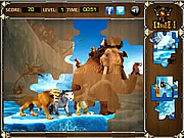 Here are images from favorite Ice Age 4 movie. Assemble the image pieces in its correct position. Use mouse to assemble the image pieces.