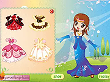 Dress up linda who is a pretty princess in a kingdom called happylandia.