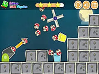 Mushroom Cannon กลับมาแล้ว! เพียงแค่เลื่อนเมาส์เพื่อปรับมุมและความแรงของปืนใหญ่ จากนั้นคลิกเพื่อยิงเห็ด ยิงเห็ดเข้าถังแต่ละใบเพื่อผ่านด่าน