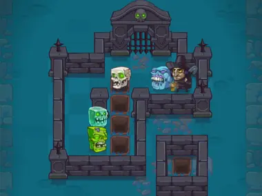 Classic sokoban game, this time with zombies. Help this witch to put the zombies in graves.