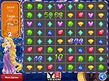 มาเล่นเกมจับคู่เพชรพลอยใหม่และสนุกที่คุณจะได้มีตัวละครหลักเป็นหนึ่งในเจ้าหญิงดิสนีย์ที่คุณรักทุกคน เกมใหม่และสนุกที่เรามีให้คุณวันนี้คือกับเจ้าหญิงราพันเซล และเป็นเกมจับคู่เพชรพลอยที่เธออยากให้คุณมาร่วมสนุกกับเธอ ที่นี่คุณจะต้องสร้างการผสมผสานที่แตกต่างกันเพื่อจับคู่และกำจัดเพชรพลอยทั้งหมดที่มีสามชิ้นขึ้นไปที่มีชนิดและสีเดียวกันและสามารถจับคู่กันได้ คุณมีคะแนนเป้าหมายที่ต้องทำให้ได้เพื่อที่จะก้าวไปสู่ระดับที่สูงขึ้น และยังมีเวลาจำกัดให้คุณใช้ ดังนั้นจงพยายามทำให้เร็วที่สุดเท่าที่จะทำได้ มาเล่นเกมใหม่และสนุกนี้และใช้เวลากับเจ้าหญิงราพันเซลกันเถอะ!
