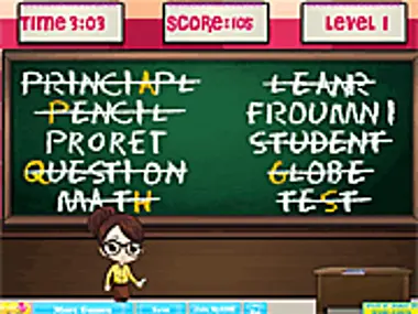 แก้คำสลับอักษรในธีมโรงเรียนให้ถูกต้องก่อนที่คุณครูจะถึงโต๊ะทำงานของเธอ คลิกตัวอักษรเพื่อสลับตำแหน่ง คลิกแอปเปิลที่ร่วงหล่นเพื่อรับพลังพิเศษ!