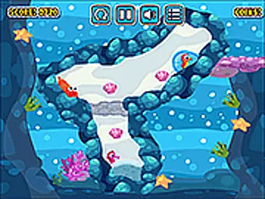 Remove the blocks to let the sea horse slide & get the sea shells. Avoid enemies as you slide.