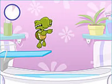 Splash as much water as you can by making the turtle jump into the bathtub from very high up.