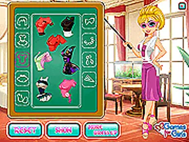 แคลร์เป็นครู แต่ครูคนอื่นๆ หลายคนไม่อยากแต่งตัวแบบน่าเบื่อ นั่นเป็นเหตุผลที่โรงเรียนหลายแห่งเลือกชุดเก๋ๆ และสนุกสนาน! วันนี้เป็นวันแรกที่โรงเรียน และต้องการเริ่มต้นวันดีๆ ที่ท้าทายนี้! เลือกเสื้อผ้าและทรงผมที่เหมาะสมเพื่อเตรียมพร้อมสำหรับวันแรกของการไปโรงเรียนของเธอ!