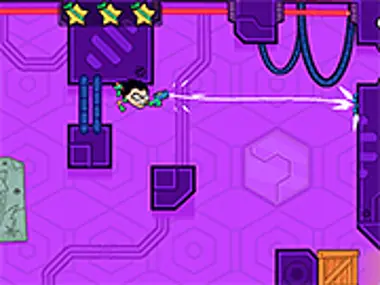 Welcome back everyone to the Teen Titans Go Games category, one of the most action-packed puzzle games this category will have, and an experience like no other. Together with Robin and the use of his extending rod you are going to infiltrate the tower. You use the arrow keys to choose the direction you want to go towards, having to get from one wall to another, get the three stars in each stage, and then exit to another level, where new challenges await you. Make sure to avoid hitting the laser traps or the robots or any other traps and obstacles, since you will have to start again from a certain checkpoint. Play this fun game only on y8.com