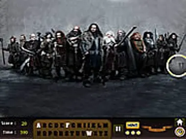 The Hobbit Hidden Alphabet เป็นเกมไขปริศนา ในเกมนี้มีตัวอักษรซ่อนอยู่ คุณต้องหาตัวอักษรที่ซ่อนอยู่ภายในภาพสุดเจ๋งของเดอะฮอบบิทก่อนเวลาจะหมดลง