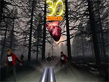 Shoot the zombies as they come out of the forest. Be quick and don't let them reach you!