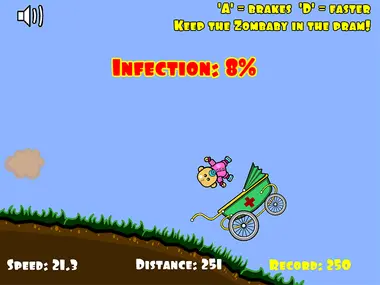 เกมการแข่งขันที่เบามาก ฟิสิกส์แบบ Box2D, เบบี้แร็กดอลล์, กราฟิกสไตล์การ์ตูน ใช้เวลาสูงสุด 3 นาทีต่อรอบ... คะแนนจะขึ้นอยู่กับระยะทาง พร้อมโบนัสเวลาหากคุณไปถึงโรงพยาบาล